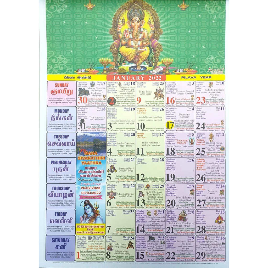 Anjali Calendar 2022 Malaysia Singapore Time God Picture Wholesale Available Tamil Hindu Calendar 2022